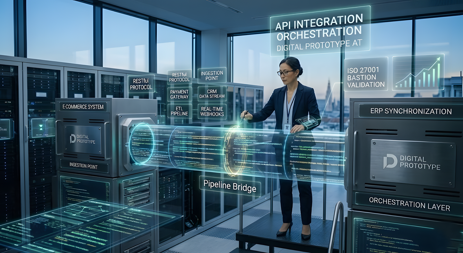 At DIGITAL PROTOTYPE LTD, we do not connect systems; we engineer the **intelligence that orchestrates them**. We build sophisticated middleware layers that transform, sanitize, and route data deterministically. Whether utilizing RESTful protocols, GraphQL, or asynchronous event streaming, our integration blueprints enforce absolute data integrity, mTLS security, and sub-millisecond data state consistency across your entire B2B and B2C operational grid.
